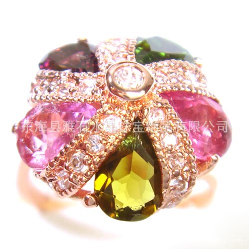 碧玺戒指 925银镀玫瑰金天然彩色碧玺‘皇冠’戒指