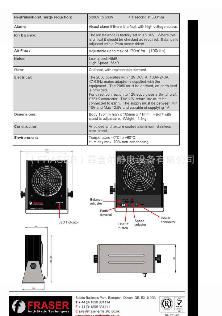 英国原装进口离子风扇 2050型离子风扇