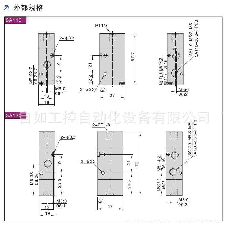 正品亚德客AirTAC 3A110-06气动阀3A120-06 3A130-06 3A110-M5全