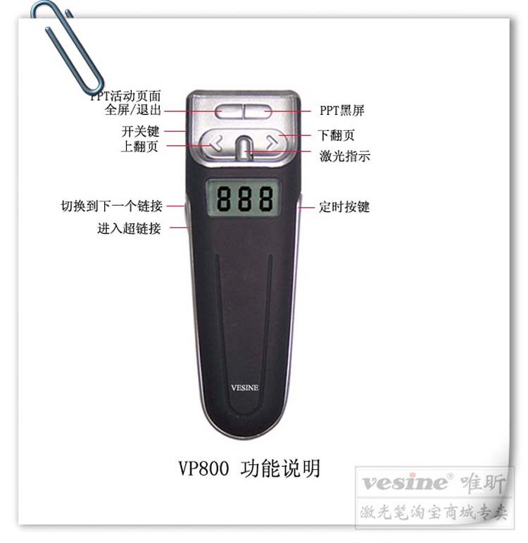 唯昕vesine vp800 USB翻页激光笔 ppt无线射频 超链接演示器