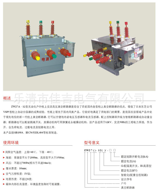 优惠价直销ZW27,ZW27-12,ZW27户外高压真空断路器