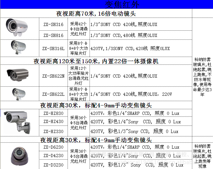 中星伟业变焦红外摄像机系列-ZX-SH316
