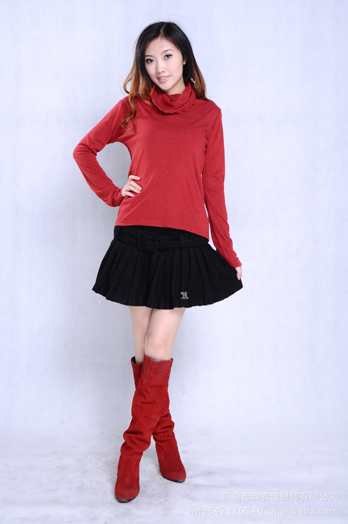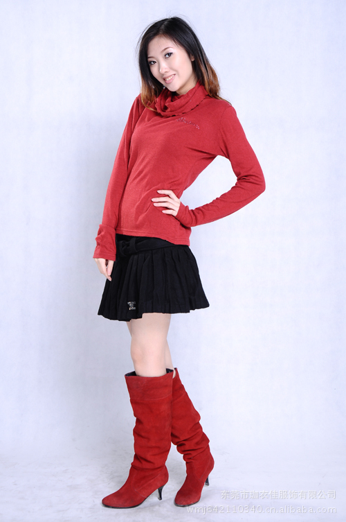 女式高领长T恤批发长袖打底衫批发 东莞欧日韩版女装批发