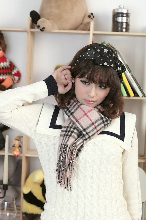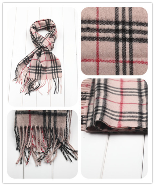 恒源祥冬季女士羊绒保暖围巾批发 加长浅咖格子羊毛围巾