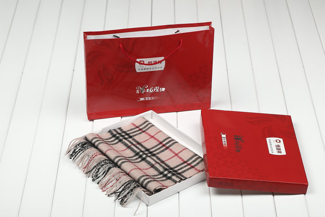 西安红围巾定制,年会聚会长须羊绒红围巾可定制logo