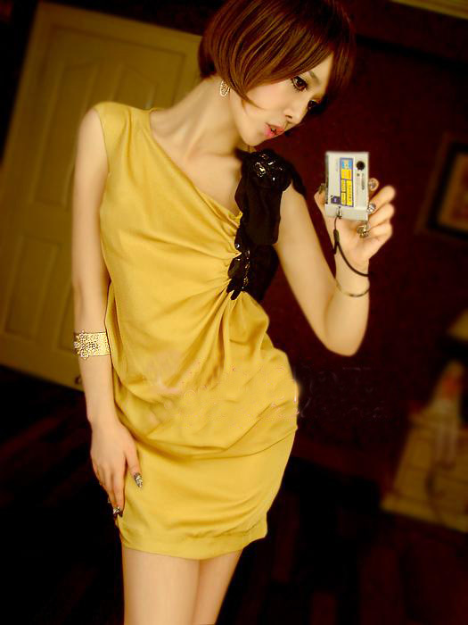 厂家直销 2012韩版女装新款夏装修身曲迦叶同款牛奶丝洋装连衣裙