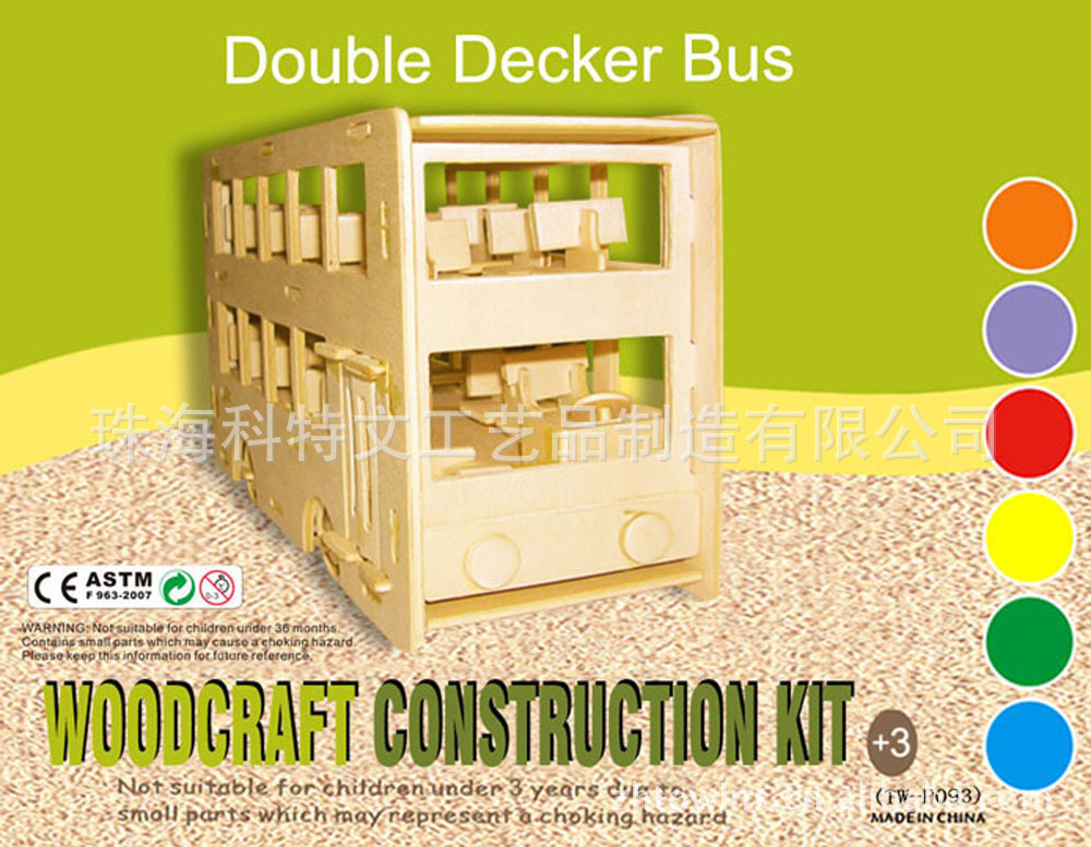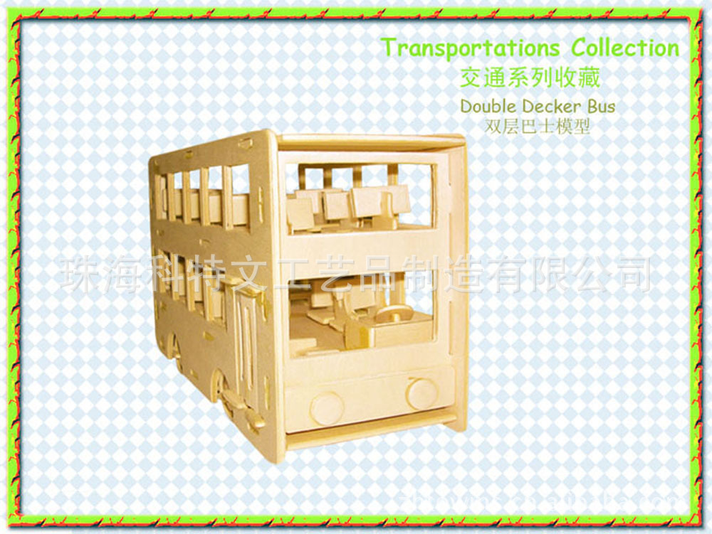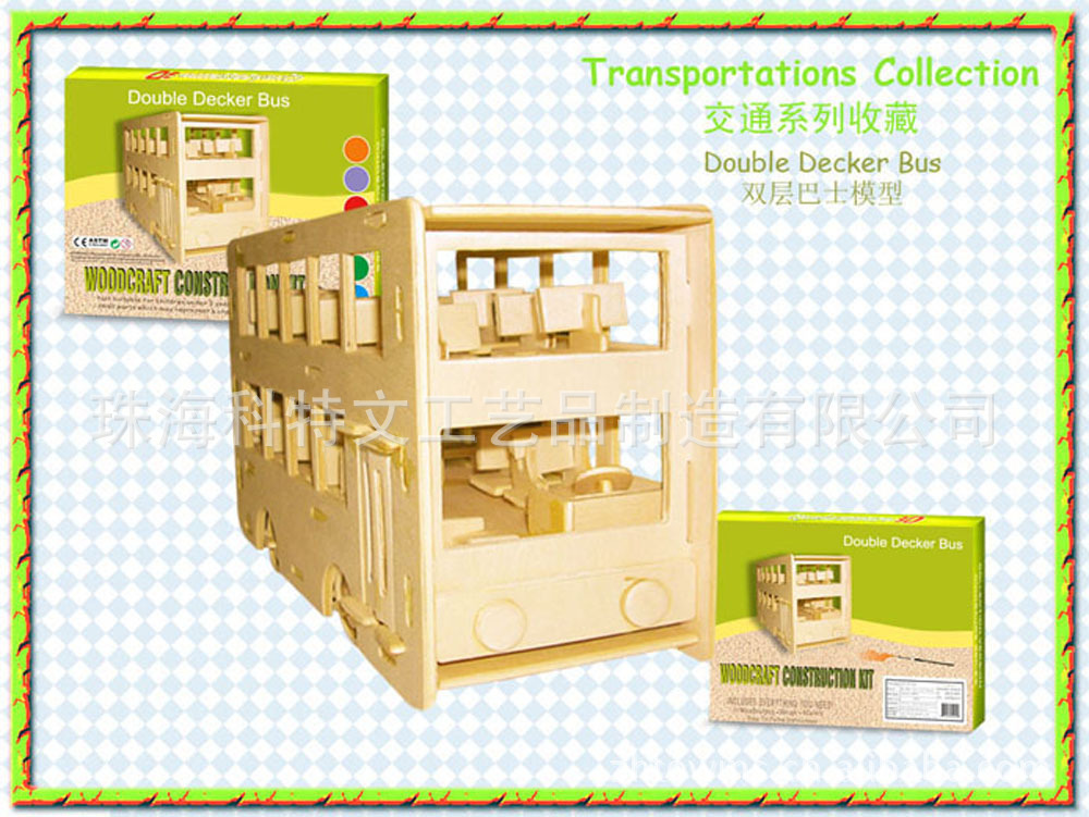 木质立体拼图/益智玩具/DIY 玩具/3D 拼图/交通工具系列-双层巴士