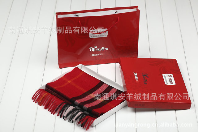 西安红围巾定制,年会聚会长须羊绒红围巾可定制logo