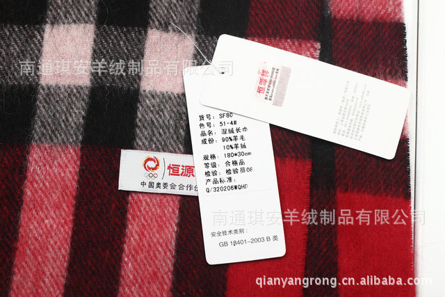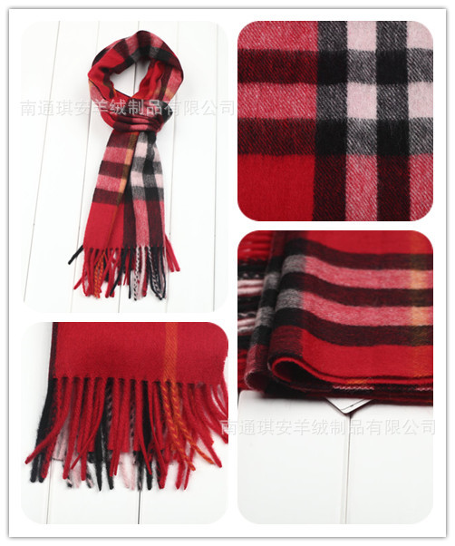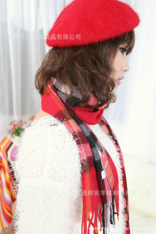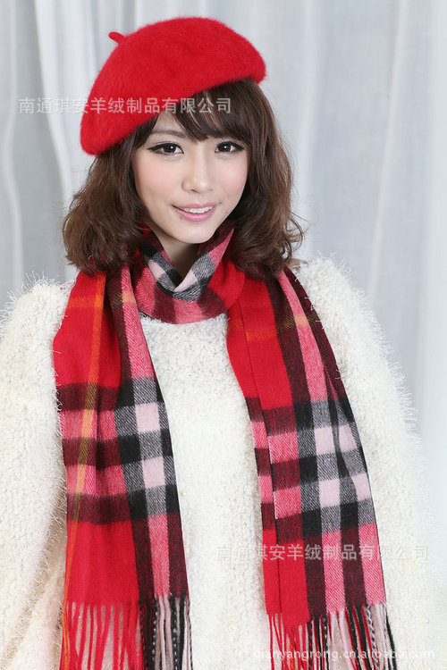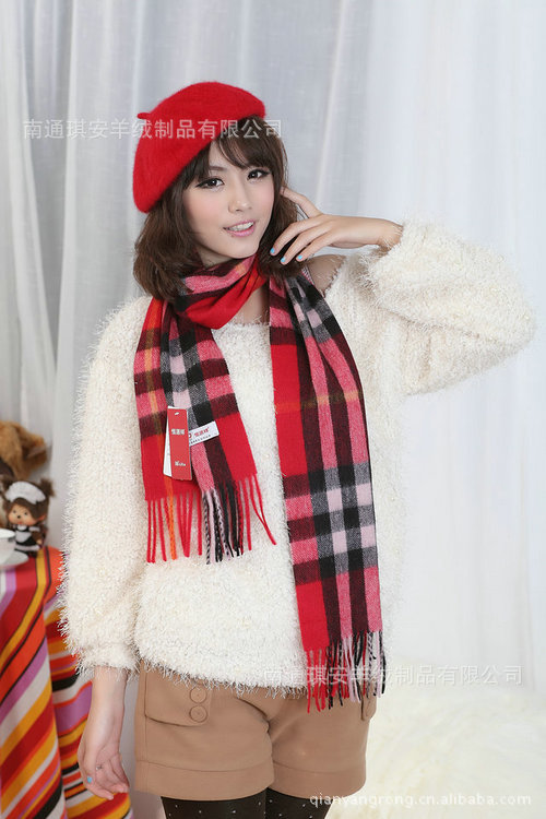 大额批发正品恒源祥红色格子围巾 羊毛羊绒女士围巾 冬季加长围脖