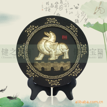 健之宝炭雕,炭雕工艺品、礼品,厂家直销,金山水圆盘摆件
