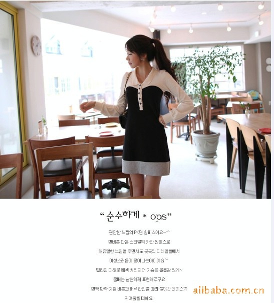 2011 新款韩版女装秋冬装时尚三色拼接休闲长袖连衣裙A407
