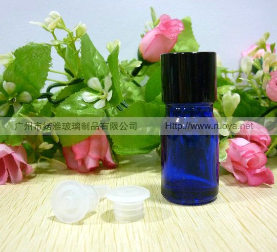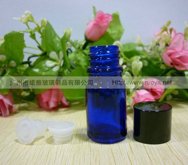 化妆瓶 供应5-100ML蓝色精油玻璃瓶配盖子亚金铝圈滴管奶头