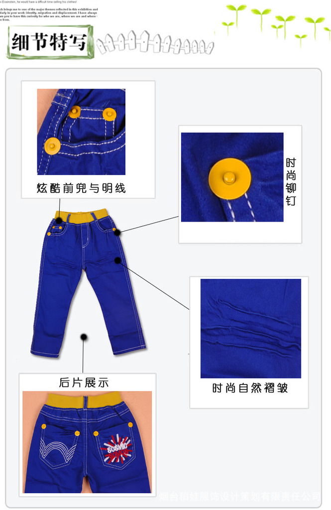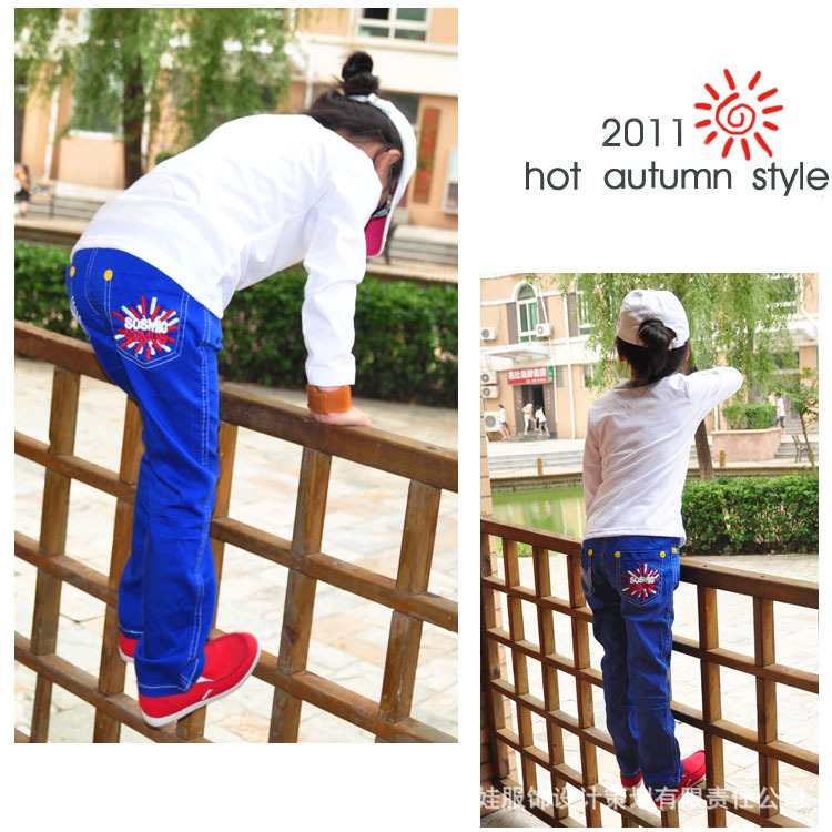 童装批发 2011秋款 韩版 休闲 纯棉水洗 童裤 20650A蓝