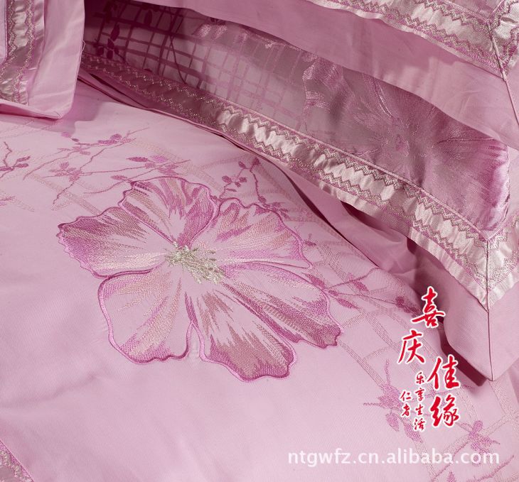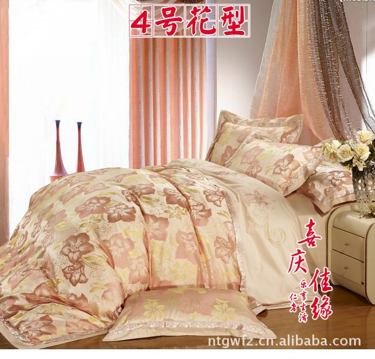 代理床上用品 奢华全棉贡缎大提花绣花四件套 塞纳河畔 全加大型