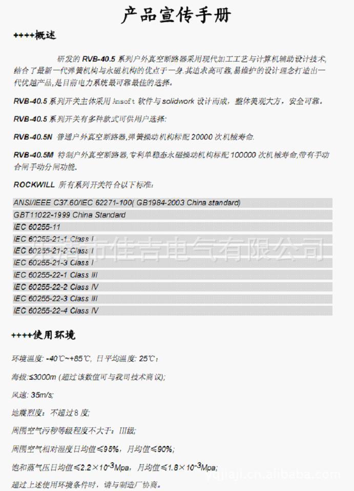 佳吉新型产品;RVB-40.5,ZW32-40.5,户外真空断路器
