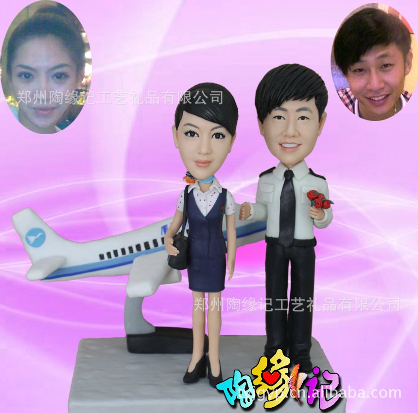 陶土人像 双人 照片定做软陶公仔 婚庆礼品 Q版公仔 工艺品