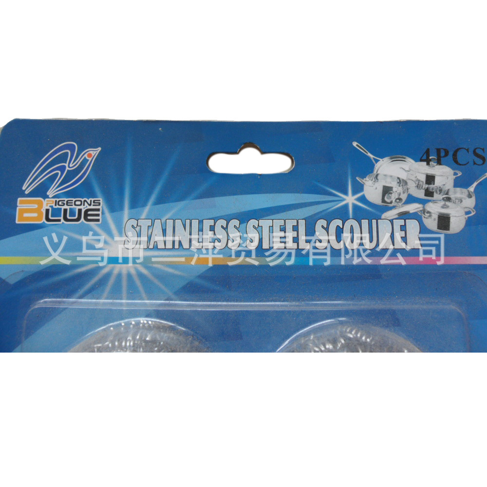 低价供应金属家用清洁钢丝球,彩卡装,规格6.3CM*2CM