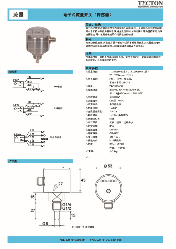 FSS 电子式流量开关(不锈钢)