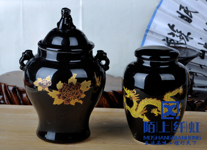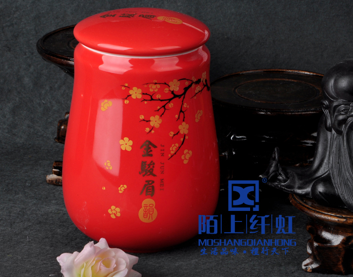 青花大红袍茶叶罐/ 密封罐/ 陶瓷茶叶罐