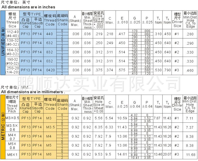 PEM宾姆PF13,PF14系列弹簧螺钉,松不脱