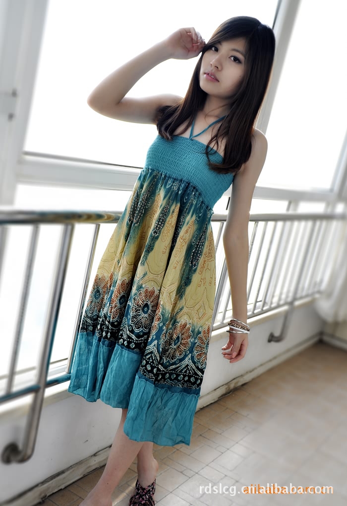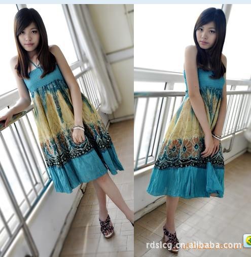 2011春夏 新品吊带抹胸长裙 波西米亚 连衣裙A392