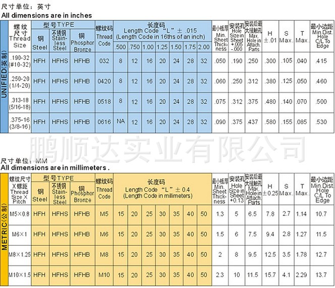 PEM宾姆标准压铆螺钉HFH,HFHS,HFHB系列