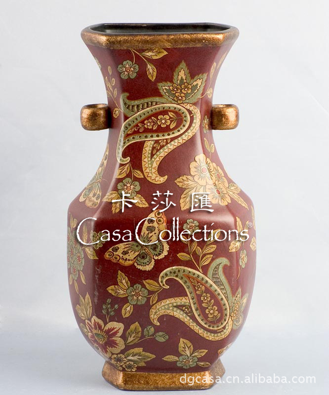 腰果花红,彩绘高温陶瓷罐室内装饰品,精美家居装饰品