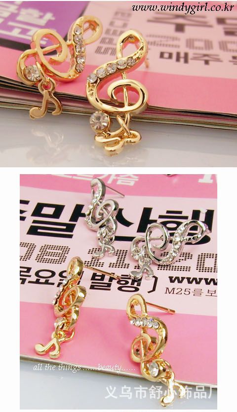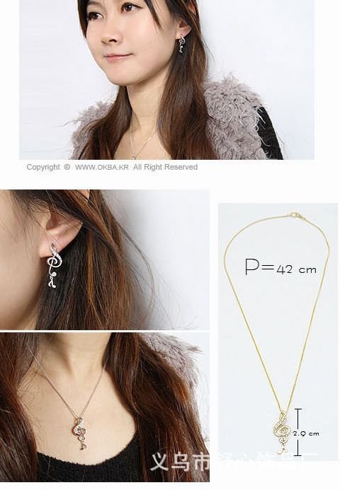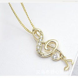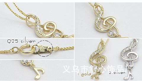 韩版饰品批发 项饰批发 金色满钻大小音乐符韩国明星项链A037-16