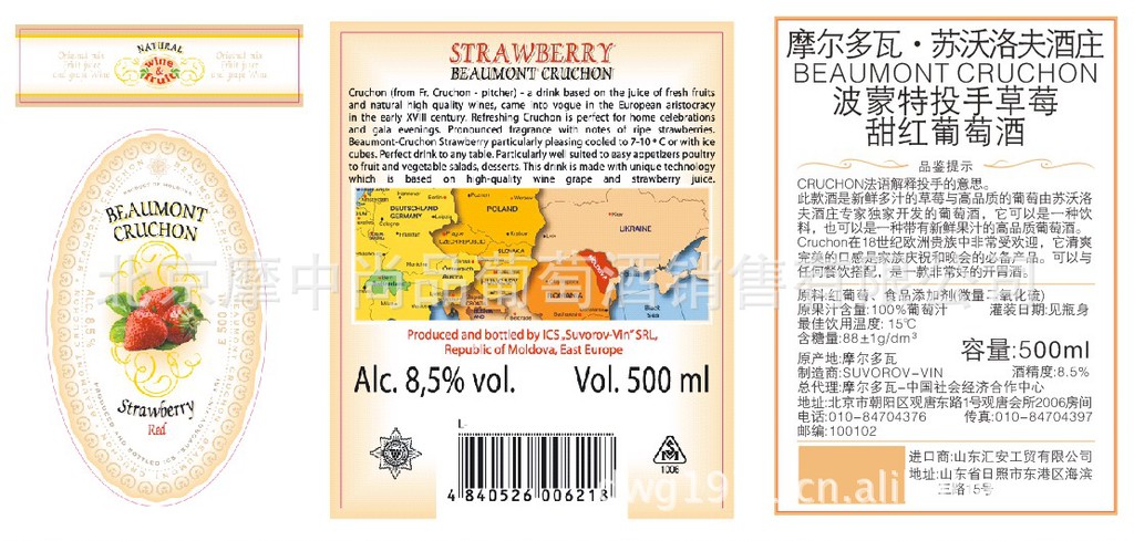 摩尔多瓦·苏沃洛夫·波蒙特投手草莓甜红葡萄酒