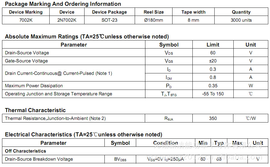 原厂供应NCE2N7002K 抗静电MOS管场效应管 60V/0.3A