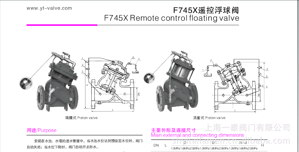 上海一泰阀门供应优质球阀、F745X遥控浮球阀、阀门