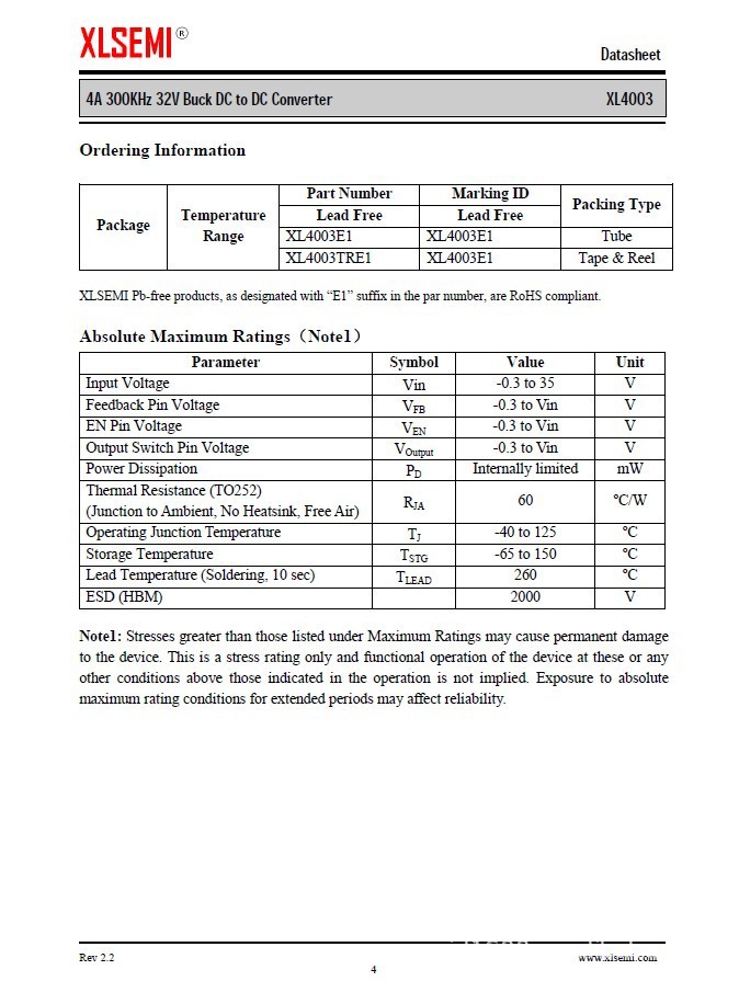 XL4003 单片高压大电流4A输出能力 集成电路IC 电源管理IC