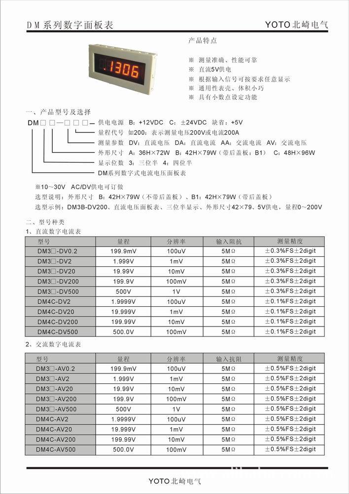 全新YOTO北崎DM4数字式电流电压面板表