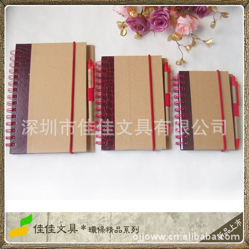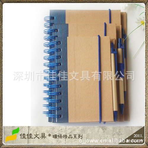佳佳文具 新品-精美时尚环保线圈本 环保带笔笔记本