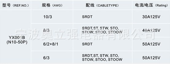 6-50P/6-50R 50A 250V R.V. 适配器电线