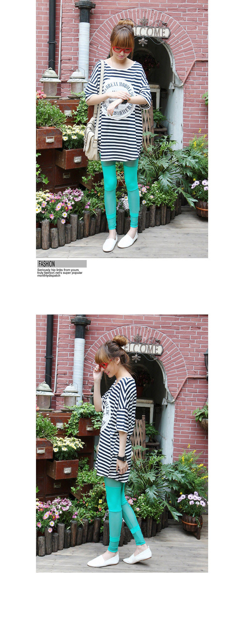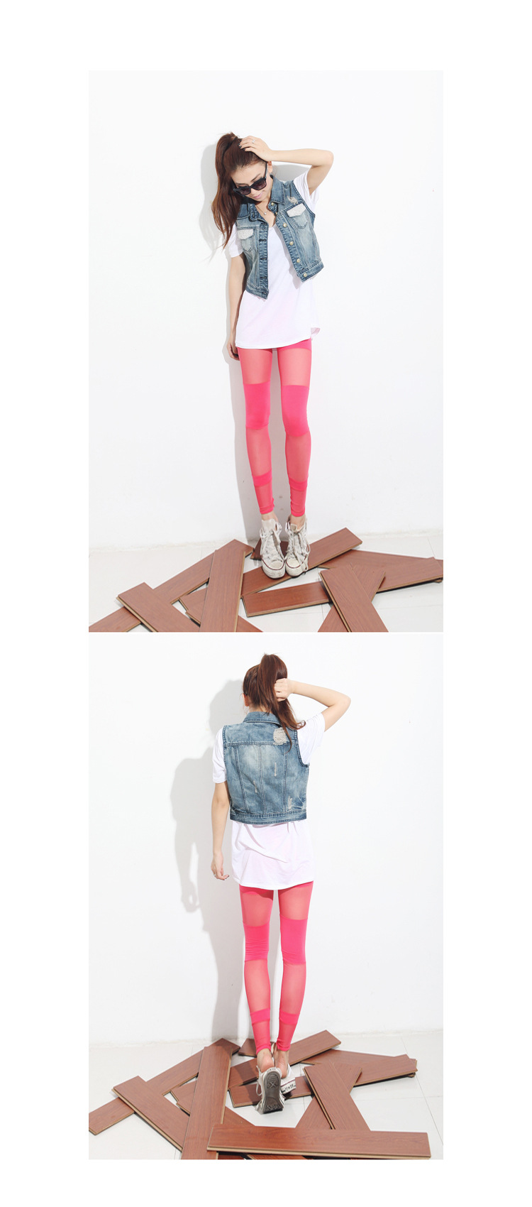 沙网拼接打底裤 玫红 绿色