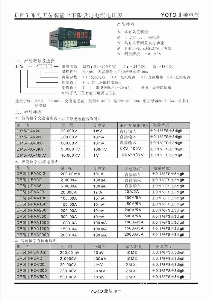 全新YOTO北崎DP5系列五位智能式电流电压表