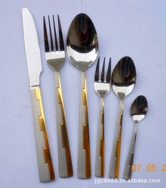 新上市不锈钢餐具,手柄镀金, 刀 叉 勺 茶勺 茶叉 咖啡勺