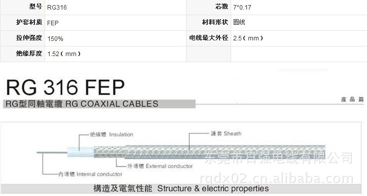 RG316铜轴电线电缆高温电线绝缘导线硅胶电线