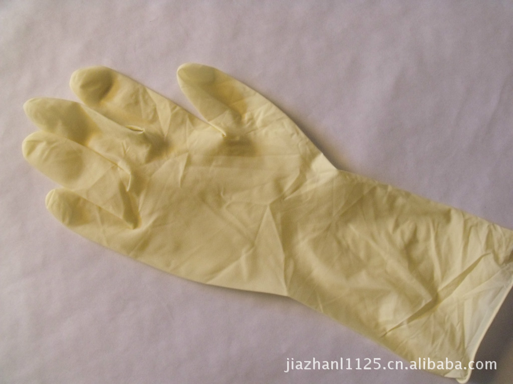 厂家直销 量多优惠 9寸无粉麻面米黄乳胶手套 B级