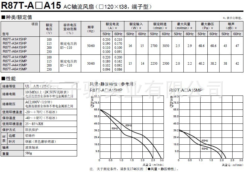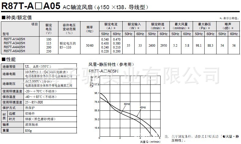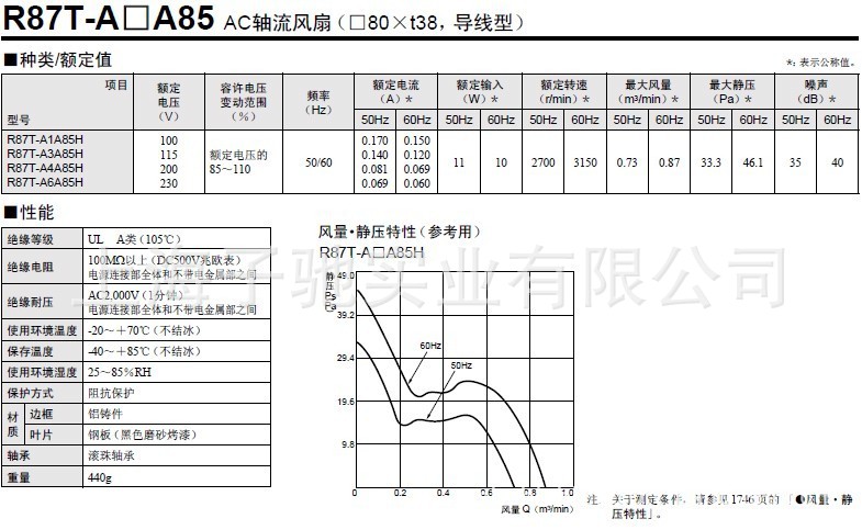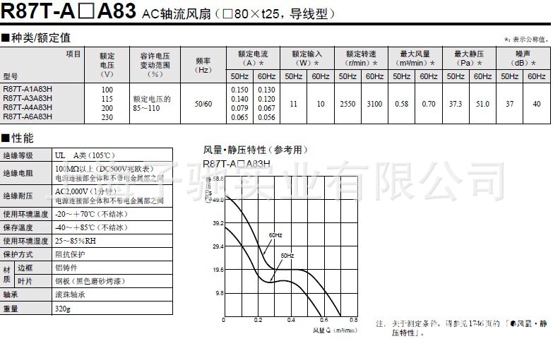 R87T-A6A15HP R87T-A6A15MP R87T-A6A83H R87T-A6A85H 轴流风扇