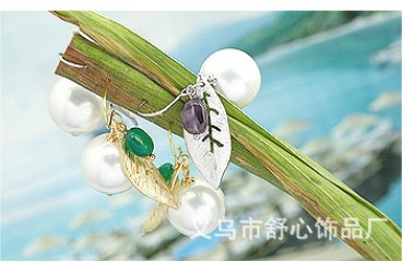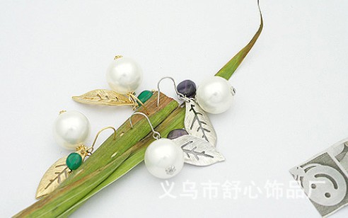 耳环批发混批 时尚饰品小额批发 新韩版小叶子珍珠耳环E077-14