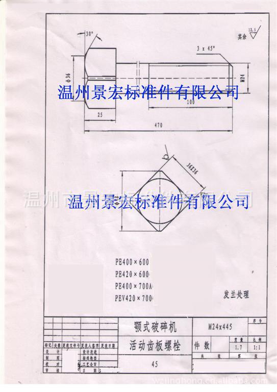 PE400×600、420×600、400×700等颚式破碎机活动齿板螺栓