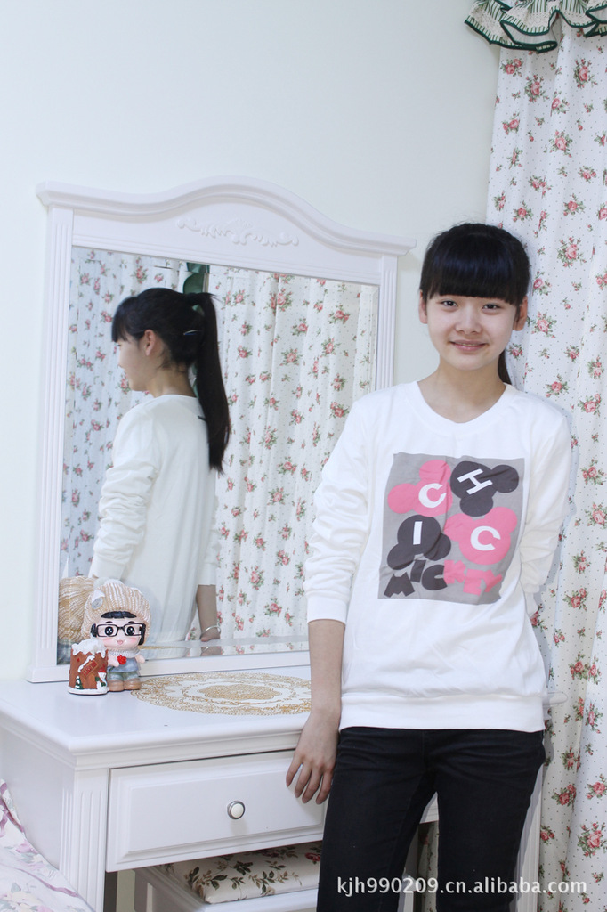 经典素色/白色纯棉简单款/女款休闲卫衣/长款卫衣