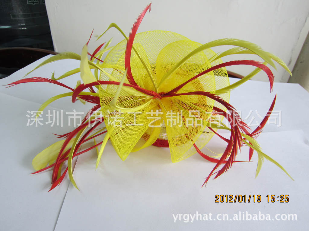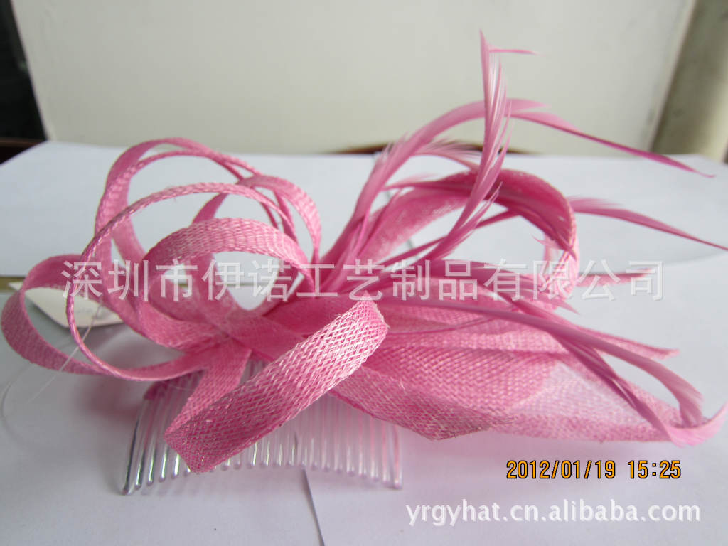 YRFC11015 厂家直销 女士玫红时尚进口麻纱头饰头花