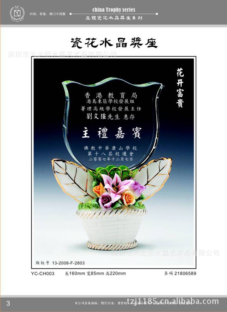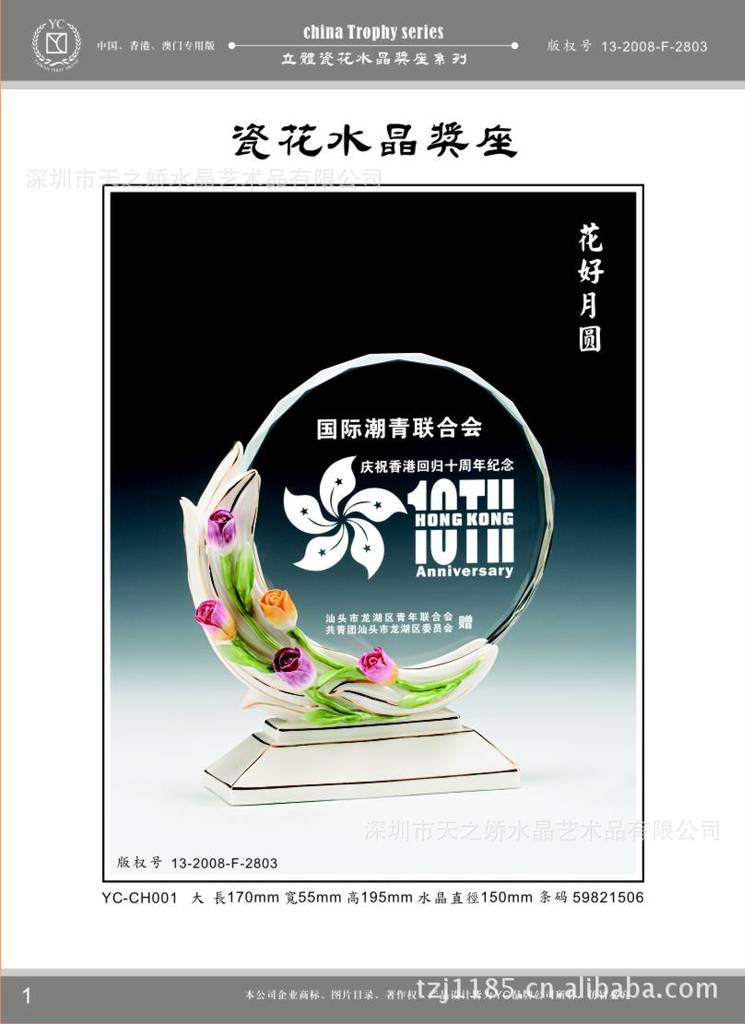 水晶瓷花奖杯、奖座、琉璃奖杯、奖座、东方之星、出类拔萃、