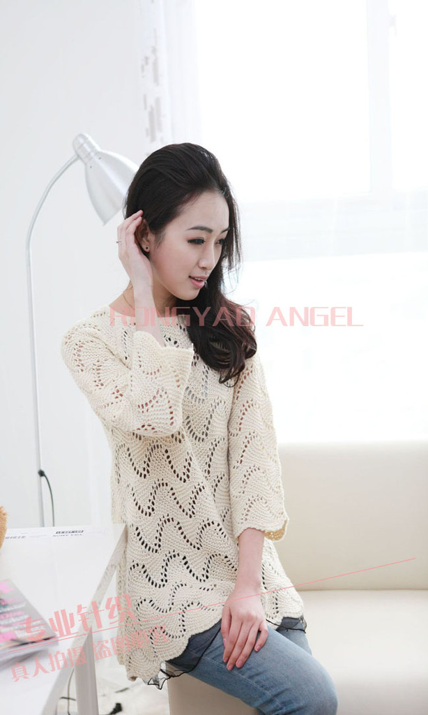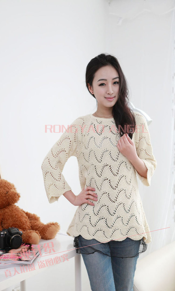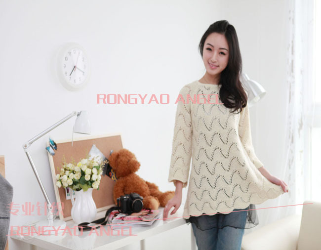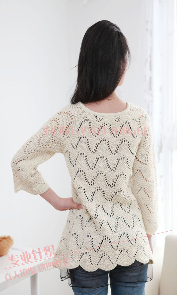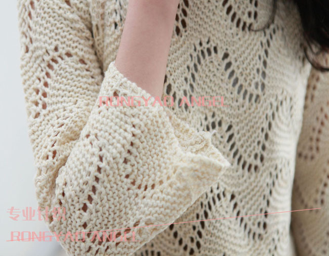 2012春夏装 韩版蕾丝下摆 镂空金丝钩花 针织衫 批发