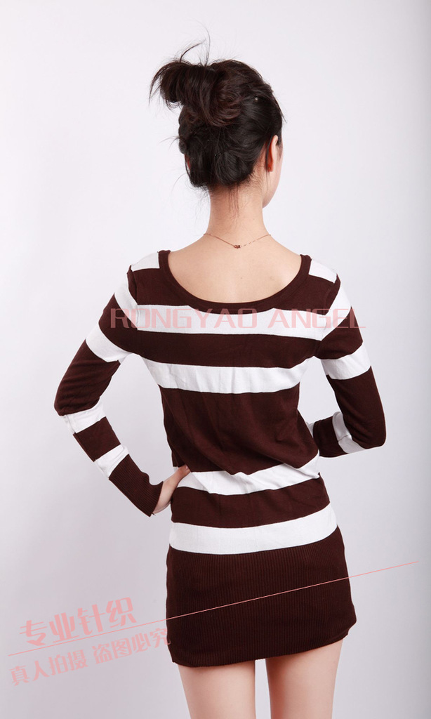 2012春装 春秋女装 时尚休闲气质条纹 长袖女式针织衫 批发定做