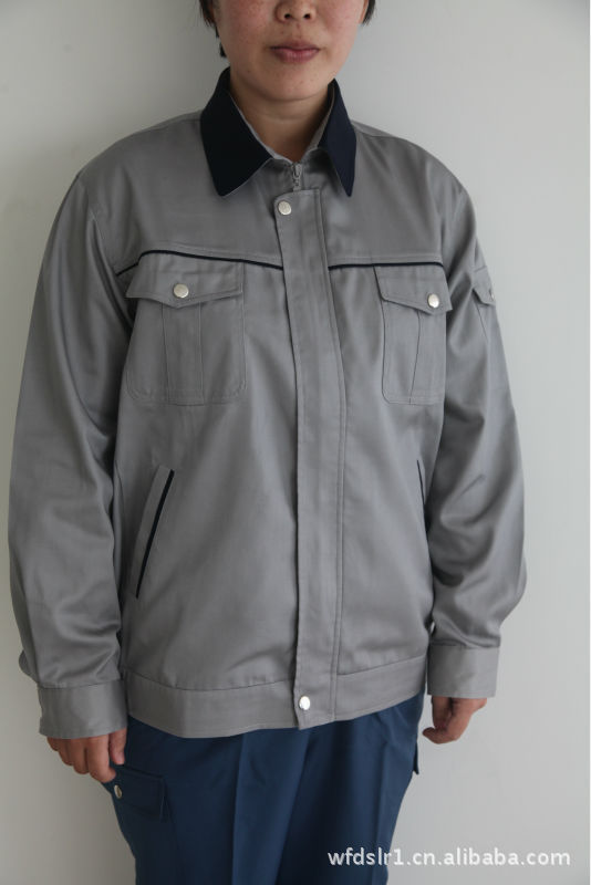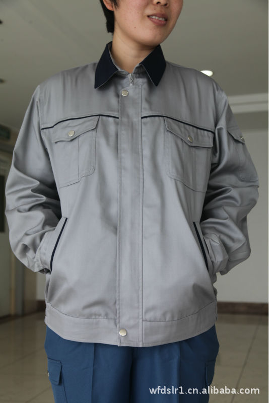 涤卡藏蓝领浅灰色工装 特价工作服上衣