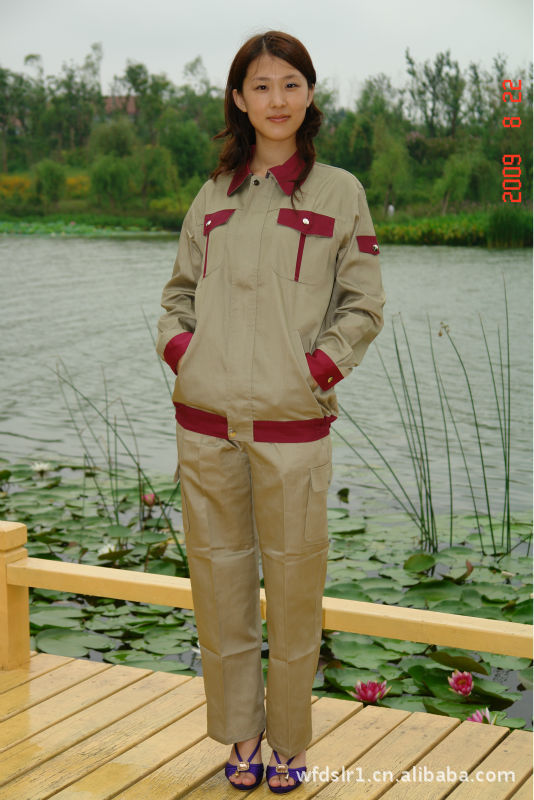 厂家大量供应涤卡卡其色工装工作服套装